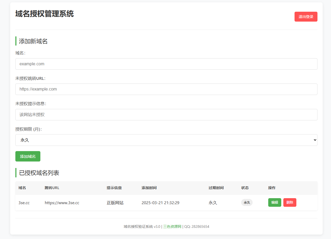 – 系统会显示域名授权状态(有效、即将过期、已过期)