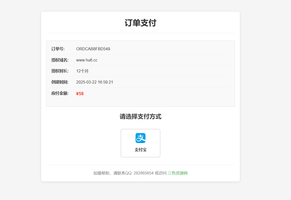 域名授权验证系统是一套完整的网站授权管理解决方案,用于保护您的网站或程序内容,确保只有获得授权的域名才能正常访问和使用。本系统采用纯域名验证方式,无需密钥,支持自助购买授权,并提供授权期限管理功能。