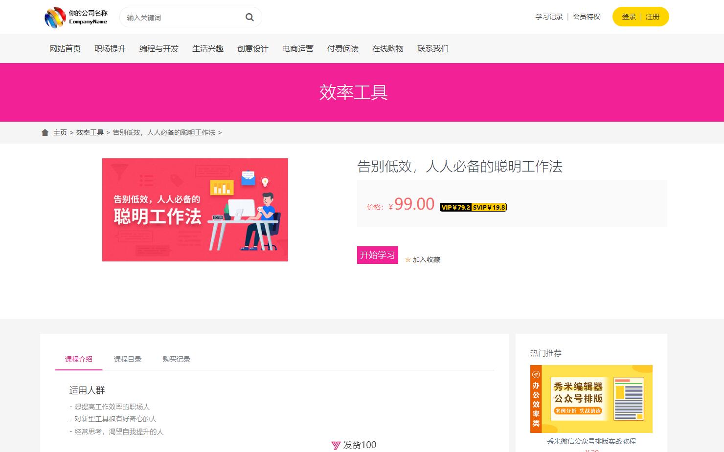 在线视频课程教育系统是一套功能强大的在线视频课程教育系统/文章付费阅读系统,无需人工值守,客户在线购买即可自动完成交易。支持缺货提醒/快捷登录/回收站/免登录购买等多种功能。